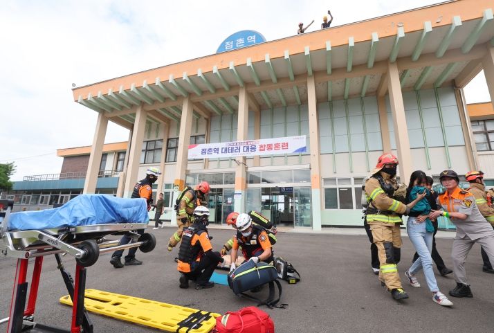 먼저 20일 오후 3시 문경 점촌역 대테러 대응 합동훈련은 문경 시내 교란을 목적으로 적 테러범들이 점촌역을 폭파하려다 미수에 그치고 인질극을 벌이다 진압되는 1부 훈련과 북한이 팔레스타인 무장 정파 하마스의 이스라엘 기습공격을 모방해 드론과 동력 패러글라이더를 이용한 후방 침투나 테러를 시도하는 상황을 가정해 테러범 진압과 화재 초동 진화 및 인명구조로 이루어진 2부 훈련으로 진행됐다.