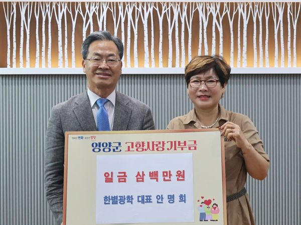 디지타임즈(DGTIMEZ) 김완태 기자 | 영양군 수비면 수하리가 고향인 현재 대구에서 안경테 및 선글라스 전문제조업체 한별광학 안명희 대표가 작년에 이어 올해도 영양군에 고향사랑기부금 300만 원을 기탁했다.