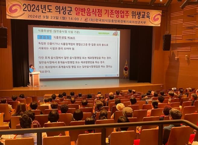 디지타임즈(DGTIMEZ) 김대경 기자 | 의성군은 지난 23일 청소년문화의집 공연장에서 일반음식점 기존 영업자 300여명 대상으로 위생교육을 실시했다.