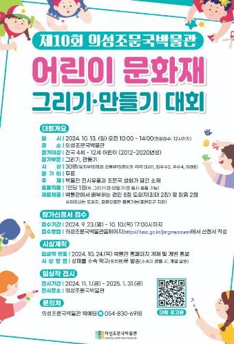디지타임즈(DGTIMEZ) 김대경 기자 | 의성군은 오는 10월 13일 의성조문국박물관에서 ‘제10회 의성조문국박물관 어린이 문화재 그리기 및 만들기 대회’가 10시부터 오후 2시까지 개최한다고 밝혔다.