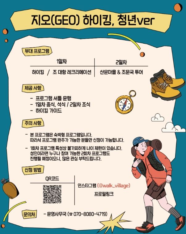 다만 성실한 참여 유도를 위해 3만원의 보증금을 받으며 SNS 인증 확인 시 환급될 예정이다. 한편 11월 중에는 같은 지오트레일 코스로 당일형 프로그램으로 진행할 계획에 있다.