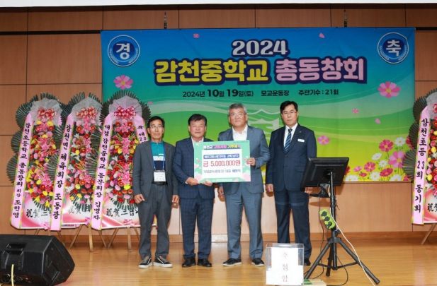 감천면 출신인 기양금속 배명직 대표는 지난 19일 감천중학교 총동창회에서 예천사랑기부금 500만 원을 전하며 고향사랑에 동참했다.