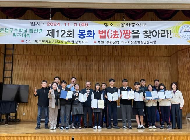 이번 대회는 법무부 청소년범죄예방위원 봉화지구협의회가 주최하고 봉화군과 대구지방검찰청 안동지청이 후원했으며, 학생들의 준법정신을 함양해 올바른 민주시민으로 성장할 수 있는 기회를 제공하기 위해 마련됐다.