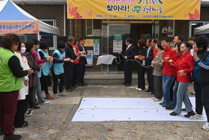 디지타임즈(DGTIMEZ) 김대경 기자 | 김천시는 지난 15일 구성면 양각1리 마을회관에서 김충섭 김천시장, 나영민 김천시의회의장을 비롯한 주민 및 자원봉사자 100여 명이 참석한 가운데 “찾아라! 김천 행복마을 23호” 행사 및 현판식을 했다.