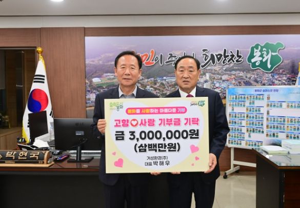 디지타임즈(DGTIMEZ) 김대경 기자 | 봉화 출신의 기업가인 ㈜거성환경 박해우 대표가 지난 27일 봉화군청을 방문해 고향사랑기부금 300만 원을 기탁했다.