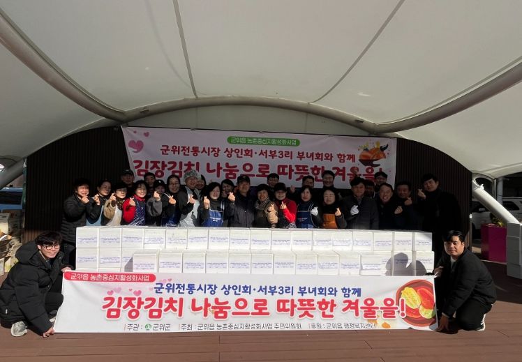 특히 이번 김장 담그기 나눔 행사에는 서부3리 부녀회원들(회장 이원선)과 군위전통시장 상인회원들이 함께 참여하는 뜻깊은 자리이다.