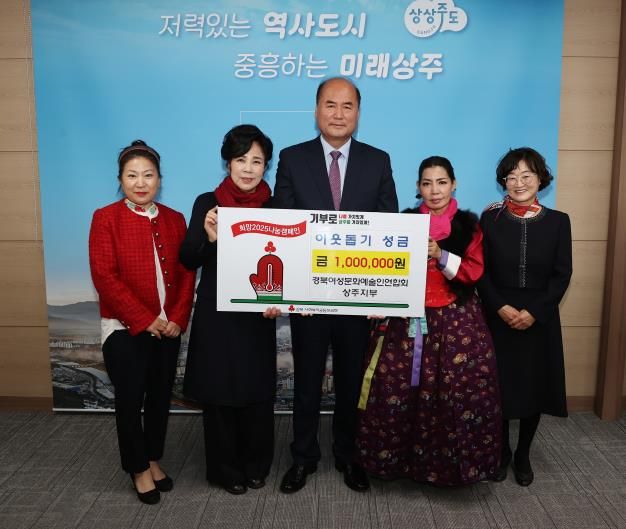 디지타임즈(DGTIMEZ) 최신형 기자 | 경북여성문화예술인연합회 상주지부는 6일 오후 상주시청에서 연말연시 어려운 이웃을 위해 희망2025 나눔캠페인 성금 100만원을 기탁했다.