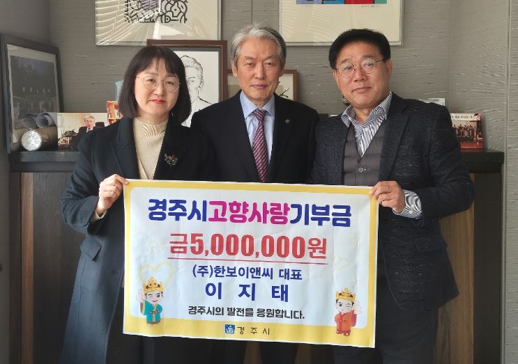 이지태 한보이앤씨㈜ 대표는 “경주는 역사와 문화가 풍부한 고향으로, 고향사랑기부제를 통해 지역 발전에 조금이나마 힘을 보탤 수 있어 기쁘다”며 “앞으로도 다양한 활동을 통해 고향 사랑을 실천하겠다”고 소감을 전했다.