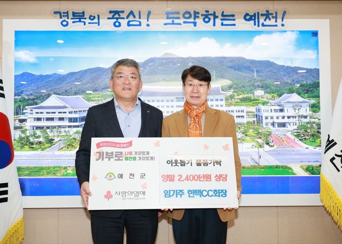 한맥CC 임기주 회장은 “항상 연말에 예천군으로 기부를 해야겠다는 마음이 있었는데, 이제야 실천하게 됐다”며 “앞으로 지역과 상생하는 기업이 되도록 노력하겠다”고 말했다.
