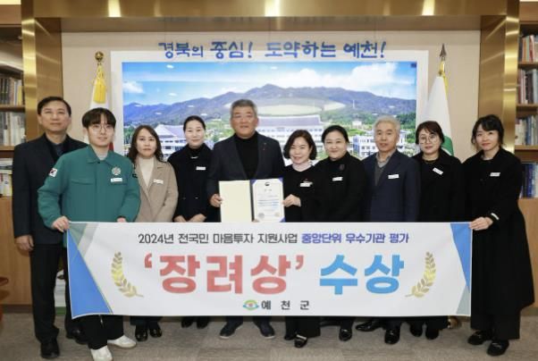 디지타임즈(DGTIMEZ) 김대경 기자 | 예천군은 마음건강돌봄 및 자살 예방을 위해 추진 중인「2024년 전국민 마음투자 지원사업」중앙단위 평가에서 장려상을 수상했다고 밝혔다.