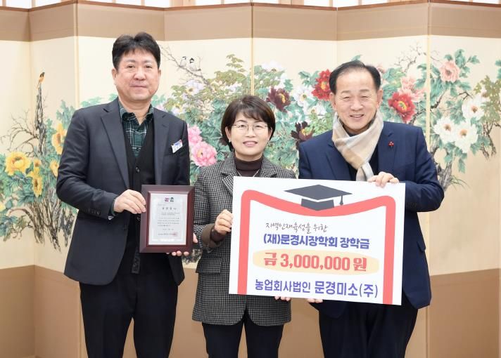디지타임즈(DGTIMEZ) 김대경 기자 | (재)문경시장학회는 17일 문경미소㈜가 지역인재 육성을 위해 300만원의 장학금을 문경시장학회에 기탁했다고 밝혔다.