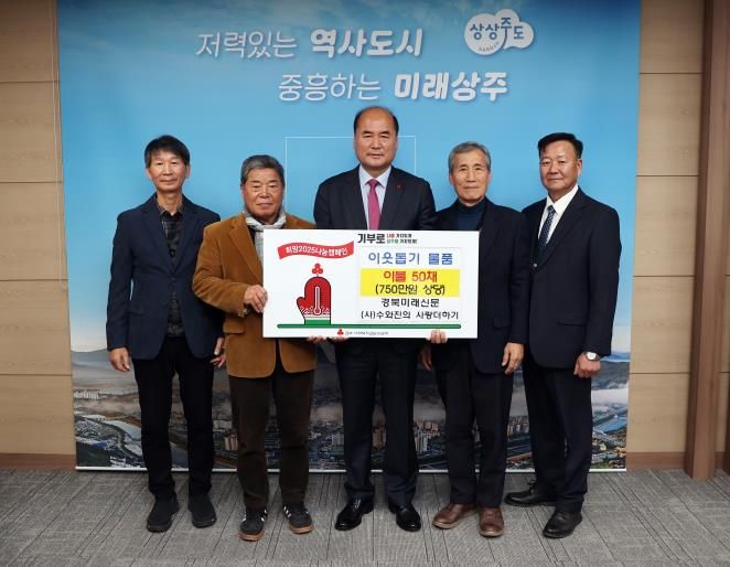 강영석 상주시장은 “경북미래신문과 사단법인 수와진의 사랑더하기가 꾸준한 나눔활동을 실천해주셔서 진심으로 감사드린다.”며 “이번 물품이 어려운 이웃들에게 큰 도움이 될 것이다.”고 감사의 인사를 전했다.