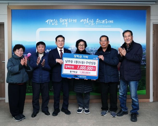 디지타임즈(DGTIMEZ) 최신형 기자 | 남부동 1통(도동, 통장 신관식) 주민 일동은 27일 지역인재를 위한 100만원의 장학금을 (재)영천시장학회(이사장 최기문)에 기탁했다.