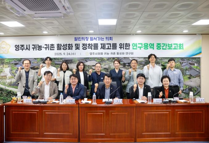 디지타임즈(DGTIMEZ) 김영호 기자 | 영주시의회 의원연구단체인‘귀농·귀촌 활성화 및 정착률 제고를 위한 방안 연구회’(대표의원 김주영)는 9월 24일 영주시의회 소회의실에서 연구용역 중간보고회를 열고, 귀농·귀촌인의 안정적 정착을 위한 정책 대안을 모색했다.