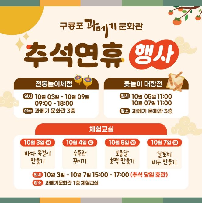 이번 행사는 가족 단위 방문객들에게 전통문화와 체험학습의 기회를 제공하고, 구룡포과메기문화관이 지역민과 관광객이 함께 어울리는 명절 문화공간으로 자리매김하는 계기가 될 것으로 기대된다.