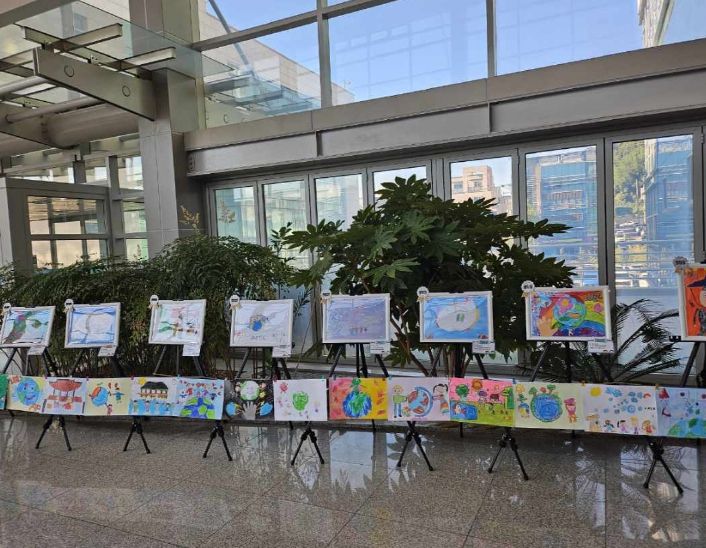 전시 공간에는 형형색색의 작품들이 가득 걸려 있으며, APEC 정상회의의 협력 정신을 어린이의 순수한 감성으로 풀어낸 그림은 시민들에게 미소와 감동을 전하고 있다.