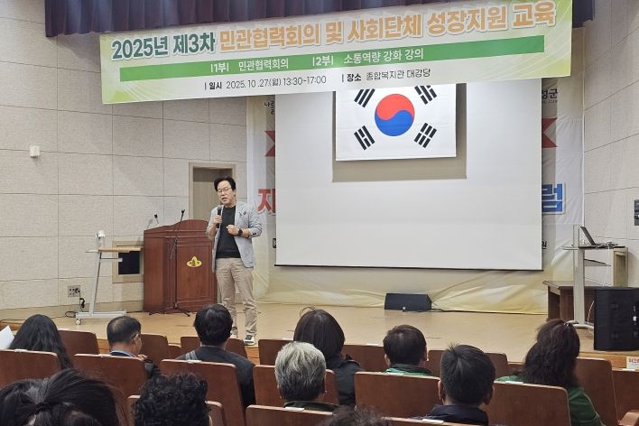 이번 행사는 지역 사회단체의 운영 역량을 강화하고 민관이 협력하는 소통 기반을 구축하기 위해 마련된 자리로 제3차 민관협력회의를 겸해 진행됐다. 먼저 지역 현안을 공유하며, 협력 방안을 논의하는 시간을 가진 뒤, ‘사회단체 성장지원 교육’에서는 방우정 강사를 초청해 ‘건강한 삶, 즐거운 인생’을 주제로 강연을 진행했다.