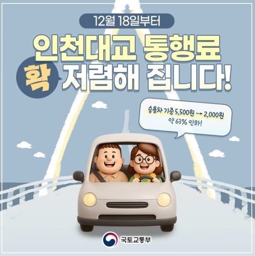 디지타임즈(DGTIMEZ) 최신형 기자 | 12월 18일부터 인천대교 통행료 확 저렴해 집니다!
