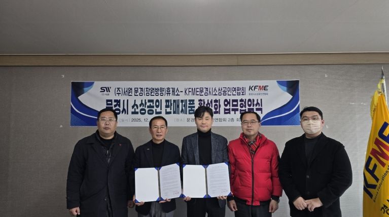 문경시 소상공인연합회와 ㈜서원 문경(창원방향)휴게소(이하 양 기관)는 2025년 12월 17일, 문경지역 소상공인 제품의 판로 확대 및 지역경제 활성화를 위한 업무 제휴 협약(MOU)을 체결했다.