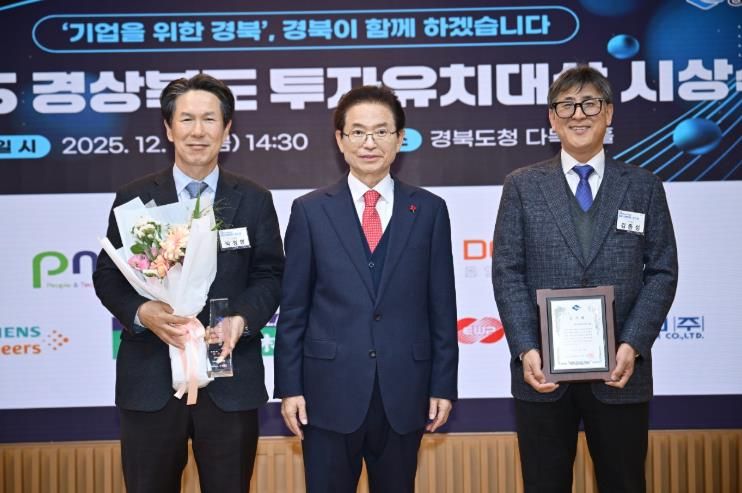 디지타임즈(DGTIMEZ) 김대경 기자 | 김천1일반산업단지에 입주한 ㈜디알젬(대표 박정병)과 ㈜대림프라콘(대표 김동수)이 지난 19일 경상북도청에서 열린 '2025년 경북 투자유치대상'시상식에서 우수상과 특별상을 수상했다.
