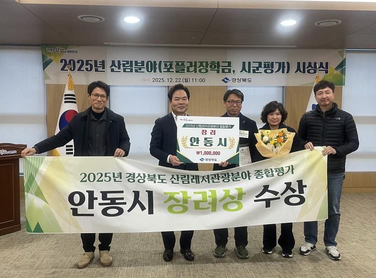 디지타임즈(DGTIMEZ) 김완태 기자 | 안동시는 경상북도 주관 12월 22일 ‘2025년 산림레저관광분야 종합평가’에서 장려상을 수상했다고 밝혔다.