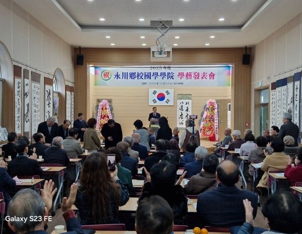 대경타임즈 최신형 기자 | 영천향교 국학학원(원장 이덕기)은 지난 23일 본원 3층 대강당에서 관내 단체장과 수강생 등 200여 명이 참석한 가운데 ‘2025년 정기 학예발표회’를 성황리에 개최했다.