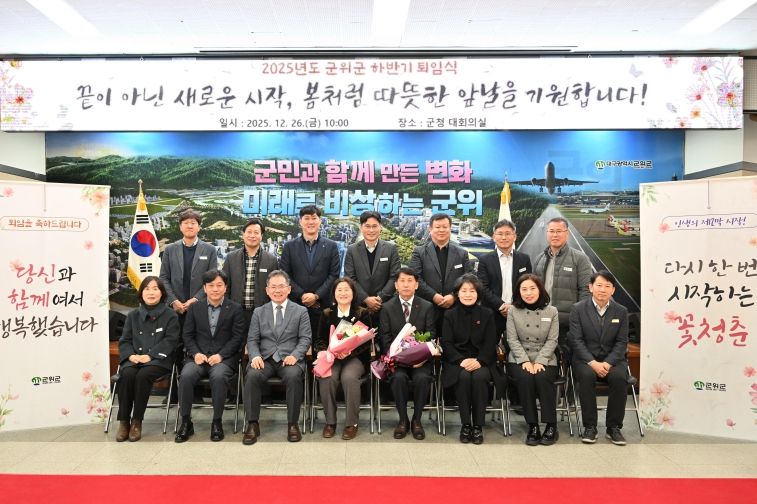 김진열 군수는 퇴직자들에게 격려의 인사와 함께 “오랜 세월 공직자로서 묵묵히 걸어온 길은 군위군정의 역사이자 자부심이며, 공직자로서의 시간은 끝나지만 군위군과 함께해 온 삶의 가치는 계속 될 것이다. 이제 시작되는 제2의 인생이 그동안의 헌신만큼이나 빛나는 시간으로 채워지길 바란다”고 말했다.