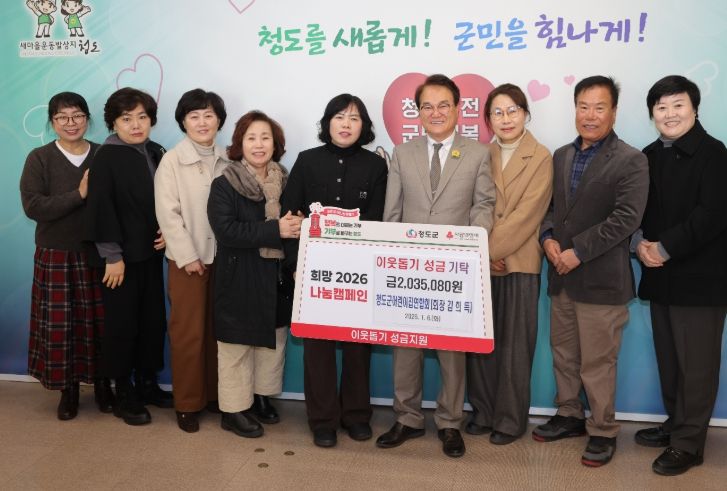 대경타임즈 이강옥 기자 | 청도군 어린이집연합회(회장 김희득)는 지난 6일 '희망2026 나눔캠페인 이웃돕기 성금' 2,035,080원을 청도군에 전달했다.