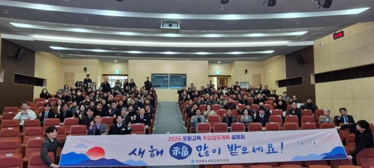 대경타임즈 김완태 기자 | 포항교육지원청은 1월 14일 포항교육지원청 여울관에서 관내 유․초․중․고․특수학교 교(원)장 140여 명을 대상으로‘2026 포항교육 주요업무계획 설명회’를 개최했다.