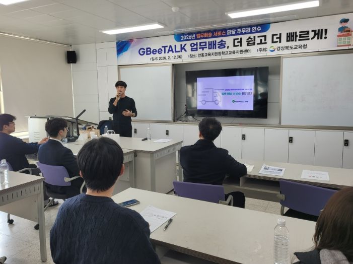 대경타임즈 남해련 기자 | 경북교육청은 12일 안동시에 있는 안동교육지원청 학교교육지원센터 대회의실에서 도내 학교지원센터 담당 장학사, 업무 배송 주무관, 업무 배송 팀장 등 약 80명을 대상으로‘2026 모두를 위한 업무 배송 서비스 운영자 연수’를 개최했다고 밝혔다.