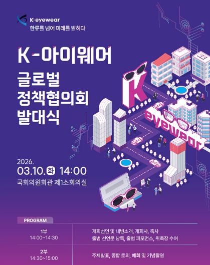 대경타임즈 최영 기자 | 대구광역시는 3월 10일 오후 2시, 국회의원회관 제1소회의실에서 우재준 국회의원 주관으로 ‘K-아이웨어 글로벌 정책협의회 발대식’을 개최한다.