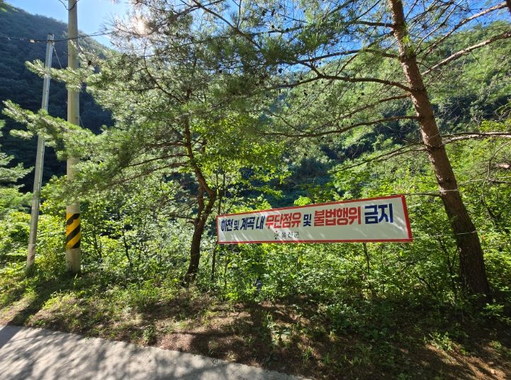 울진군 관계자는“정부 차원에서 전국적으로 불법행위 정비를 추진하는 만큼 하천·계곡 구역 내 불법 경작, 시설물 설치, 형질변경 등 불법행위가 근절될 수 있도록 무관용 원칙에 따라 강력히 대응하겠다”라고 밝혔다.