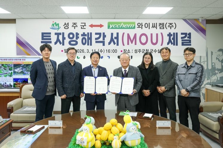 대경타임즈 김대경 기자 | 성주군은 3월 11일 군수실에서 와이씨켐㈜과 투자양해각서(MOU)를 체결하고, 투자사업의 원활한 추진을 위한 상호 협력에 나섰다.