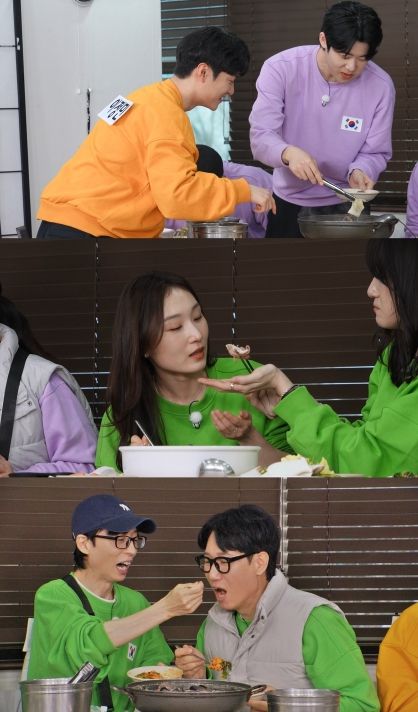 이번 레이스는 ‘활력 충전도 스피드인가 봄’으로, 멤버들은 미션 결과에 따라 복불복 식사권을 받게 된다. 하지만 식사 기회를 얻고도 마음 편히 먹을 수 없는 상황에 놓이게 되는데 특히 유재석과 지석진은 서로에게 음식을 먹여줘야 하는 웃지 못할 광경이 펼쳐지자 유재석은 “이제 석삼이 형 밥까지 먹여줘야 해?”라며 푸념을 늘어놓았다. 이때 두 형들의 모습을 지켜보던 하하는 “실버타운 같다”며 눈물을 훔치기도 했다.