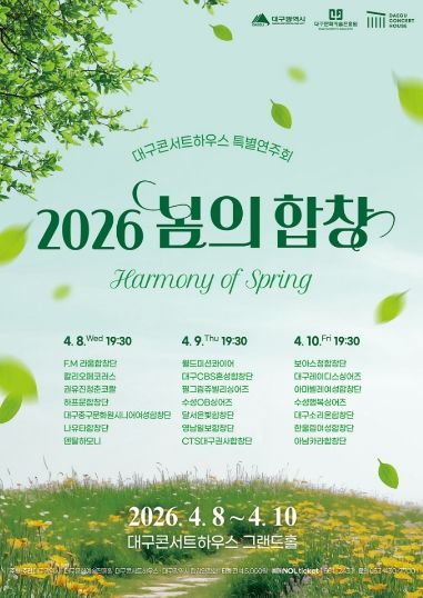 박창근 대구콘서트하우스 관장은 “합창은 가장 인간적인 음악이자, 함께할 때 더욱 빛나는 예술”이라며 “이번 공연이 시민들에게 따뜻한 위로와 희망을 전하고, 봄의 설렘을 함께 나누는 시간이 되기를 바란다”고 말했다.