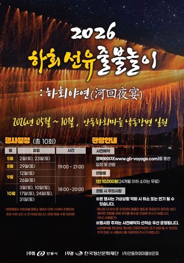 대경타임즈 김완태 기자 | 안동시가 주최하고 한국정신문화재단 및 하회마을보존회가 주관하는 안동의 대표 야간 관광 콘텐츠 ‘2026 하회선유줄불놀이’가 오는 5월 2일 첫 시연을 시작으로 화려한 막을 올린다.