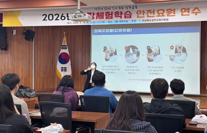 대경타임즈 남해련 기자 | 성주교육지원청은 4월 18일 관내 초·중·고등학교 교사 30명을 대상으로 현장체험학습 운영의 안전 역량을 강화하기 위해 '2026년 현장체험학습 안전요원 연수'를 실시했다.