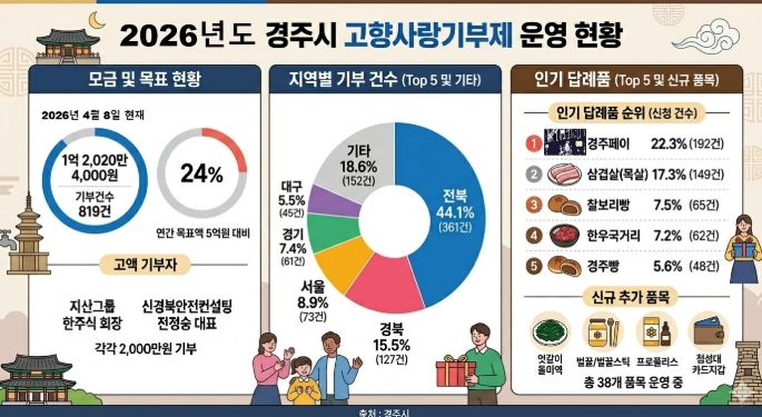 최혁준 경주시장 권한대행은 “고향사랑기부제는 지역과 기부자가 상생하는 제도”라며 “기부 참여 확대와 답례품 다양화를 통해 지역경제 활성화에 기여하겠다”고 말했다.