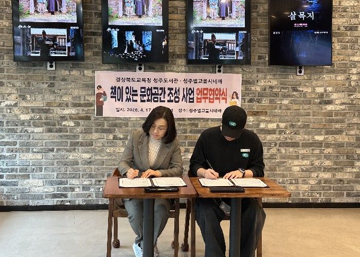 대경타임즈 남해련 기자 | 경상북도교육청 성주도서관은 성주별고을시네마와 '책이 있는 문화공간 조성'사업 추진을 위한 업무협약을 체결하고, 작은영화관과 연계한 독서문화 확산에 나선다.