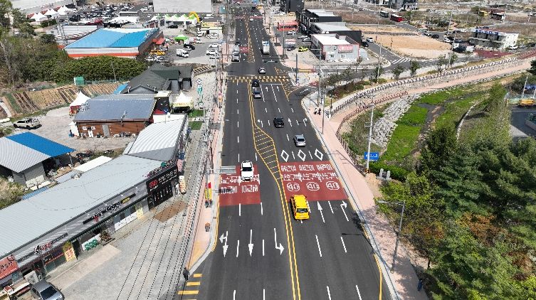 시는 총사업비 183억 원을 투입해 원호리·문성리·송림리를 잇는 2.56km 구간 도로 확장에 나섰다. 기존 보도를 일부 조정해 차로를 확보하고, 폭이 부족한 구간에는 인노천 사면을 활용한 데크 보도를 설치해 추가 차로를 확보했다. 구간별 유턴 공간도 새로 조성해 교통 흐름 개선에 힘을 실었다. 사업이 완료되면 출퇴근 시간대 정체가 크게 완화될 것으로 전망된다.