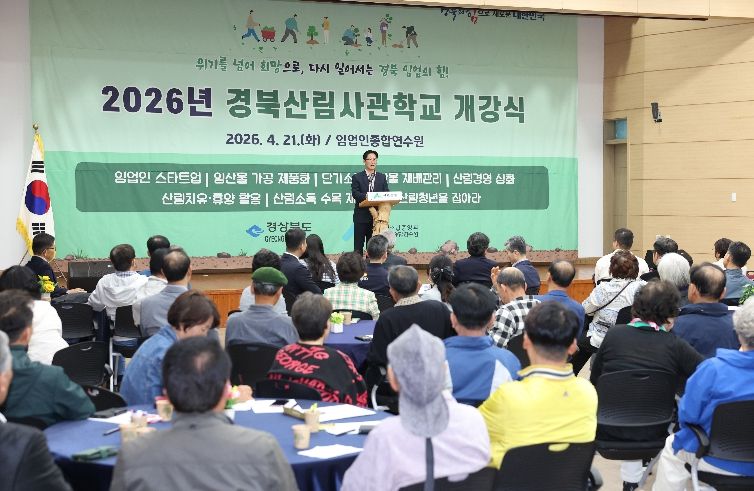 대경타임즈 김대경 기자 | 경상북도는 4월 21일, 산림조합중앙회 임업인종합연수원에서 교육생 등 160명이 참석한 가운데 ‘2026년 경북산림사관학교 개강식’을 개최했다.