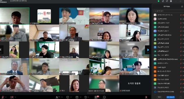 마찬가지로 경북-경기 ‘온라인 만남의 날’도 경북 및 경기도교육청 업무담당자 각 1명과 경북-경기도 온라인 공동 수업 참여 교사(경북 10명, 경기도 10명)가 참여하여 지속 가능한 수업 교류에 대해 협의하고 경북과 경기도의 수업력이 함께 향상되는 방안을 모색했다.
