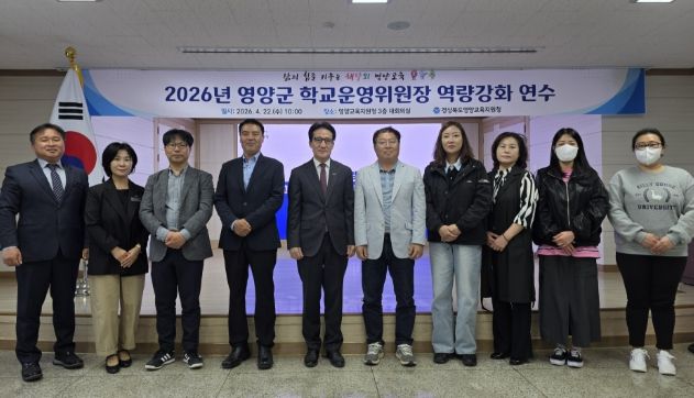 대경타임즈 김완태 기자 | 영양교육지원청은 4월 22일 영양교육지원청 3층 대회의실에서 관내 초・중・고등학교 10개교 학교운영위원장을 대상으로 2026학년도 학교운영위원장 연수를 실시하고 영양군 학교운영위원장협의회를 이끌어갈 임원진을 선출했다.