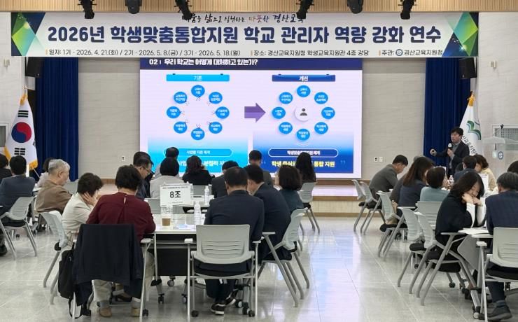 대경타임즈 남해련 기자 | 경상북도경산교육지원청은 4월 21일 교육지원청 학생교육지원관 4층 강당에서 관내 초․중․고․특수․각종학교 교장을 대상으로 ‘2026년 학생맞춤통합지원 학교 관리자 역량 강화 연수’를 개최했다.