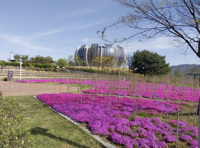 대경타임즈 최신형 기자 | 상주시민의 힐링 휴식처인 중덕지 자연생태공원에 봄 향기를 가득 머금은 꽃잔디가 만개해 눈부신 보라색 빛을 발산하고 있다.