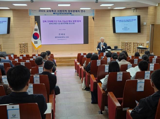대경타임즈 남해련 기자 | 경북교육청은 28일 구미시에 있는 경상북도교육청연수원 소강당에서 도내 15개 교육특구 시범 지역의 교육지원청과 지자체 관계자 80여 명이 참석한 가운데 ‘2026 교육특구 시범지역 업무 관계자 연수’를 개최했다고 밝혔다.