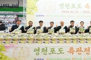 대경타임즈 최신형 기자 | 영천시는 22일부터 28일까지 일주일간 대형 하나로마트 9개점에서 ‘설 명절맞이 영천포도 특판행사’를 진행한다고 밝혔다. 이번 행사는 설 명절을 맞아 영천포도를 홍보하기 위해 마련됐으며, 우수한 품질을 자랑하는 영천 샤인머스캣 1.5kg 상자 3만 박스(45톤)를 양재, 창동, 수원, 성남 등 대형 하나로마트 9개점에 공급한다. 특별 행사가 진행된 27일에는 최기문 시장, 김선태 시의장, 이상용 농협 영천시지부장, 성영근 영천농협조합장, 김천덕 금호농협조합장, 이상혁 고경농협조합장, 장호진 조합공동사업법인 대표 등이 하나로마트 양재점에 직접 방문해, 현장에서 판촉활동을 펼치며 소비자 홍보에 나섰다. 시 관계자는 “설 명절을 맞아 명품 영천 샤인머스캣을 공급하기 위해 당도가 높고 품질이 우수한 물량을 엄선해 준비했다”며, “설 명절, 가족들과 함께 달콤한 영천포도를 맛보며 즐기시길 바란다”고 말했다. 한편 영천시는 높은 당도와 뛰어난 맛을 가진 영천포도의 전국적인 판매와 홍보를 위해 하나로마트, 이마트, 롯데마트 등 대형 유통업체와 협업해 전국 대도시와 인근 소비지를 대상으