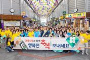 디지타임즈(DGTIMEZ) 김영호 기자 | 칠곡군은 추석 명절을 맞이해 2일 왜관시장에서 장보기 및 물가안정 캠페인을 전개하며 주요 성수품 가격 관리와 전통시장 활성화에 나섰다. 이번 행사는 농협군지부, 여성단체협의회, 칠곡군 산림조합, 칠곡군 공무원 등 100여명이 참여했으며, 명절 준비에 나선 군민들에게 전통시장의 따뜻한 정과 편리함을 알리고, 경기 침체와 고물가로 어려움을 겪고 있는 전통시장에 활기를 불어넣고 지역경제 활성화를 위해 마련했다. 김재욱 칠곡군수는 “올해 칠곡사랑상품권 포인트 상향 및 온누리 상품권 환급행사를 통해 군민들의 장바구니 부담을 줄이려고 노력하고 있다”며 “앞으로도 다양한 행사와 지원을 통해 전통시장을 살려 경기침체로 힘든 시기를 보내고 있을 상인들에게 도움이 됐으면 한다”고 밝혔다.