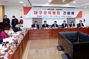 대경타임즈 김대경 기자 | 경상북도와 국민의힘(경북도당위원장 구자근)은 26일 국회의원회관에서 대구경북통합 간담회를 열고 지역 국회의원의 다양한 의견을 수렴하고 국회와의 협력방안을 논의했다. 이날 간담회에는 이철우 경북도지사와 국민의힘 구자근 경북도당 위원장, 경북지역 국회의원과 경상북도 주요 간부들이 참석했다. 이철우 경북도지사는 인사말에서“경북은 2019년부터 전국에서 가장 먼저, 가장 적극적으로 통합 논의를 시작해왔다. 정부가 광역 통합 시 행정·재정·제도적 지원을 책임지겠다고 한 만큼 지금이 통합의 적기이다.”면서 “경북의 특별법안은 충남·대전, 광주·전남이 상당수 참고할 정도로 이미 준비되어 있다. 국회에서 대구경북통합에 대해 많은 관심을 갖고 적극적으로 지원해 주길 당부드린다.”고 말했다. 구자근 도당위원장은“행정통합은 대구경북의 미래에 관한 중요한 사항”이라면서 “성장동력 약화, 수도권 집중 등으로 통합은 이미 시대적 흐름이다. 시도민의 삶에 큰 변화를 불러오는 만큼 타이밍과 속도가 중요하다. 꼼꼼하게 점검하고 지역의 목소리를 대변하겠다.”고 언급했다. 이어 송언석 국민의힘 원내대표 역시 대구경북 통합은 중요한 사항이라고 강조하며“대구경북이 가장
