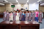 디지타임즈(DGTIMEZ) 김영호 기자 | 상주시의회는 21일 상주시의회 임시회 제3차 본회의에서 정장 대신 한복을 입은 채 의정활동을 펼쳤다. 이날 한복의 날을 맞아 명주의 고장을 알리고 한복 문화 활성화를 위해 의원들이 한복을 입고 등원해 눈길을 끌었다. 상주시의회는 상주를 한복 문화 중심도시로 만들기 위해 ‘한복 입기 활성화 지원 조례안’과 ‘한복 문화산업 진흥에 관한 조례안’을 통해 한복의 일상 문화 향유 기반을 확대하고 우리 고유의 복식인 한복을 체계적으로 계승 발전시키기 위해 노력해 오고 있다. 상주시의회 안경숙 의장은 “명주와 한복의 고장 상주의 자긍심을 높이고 한복 문화 중심도시로 성장하길 바란다.”라고 말했다.